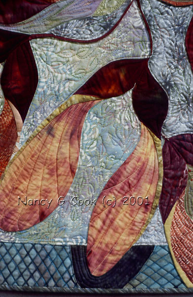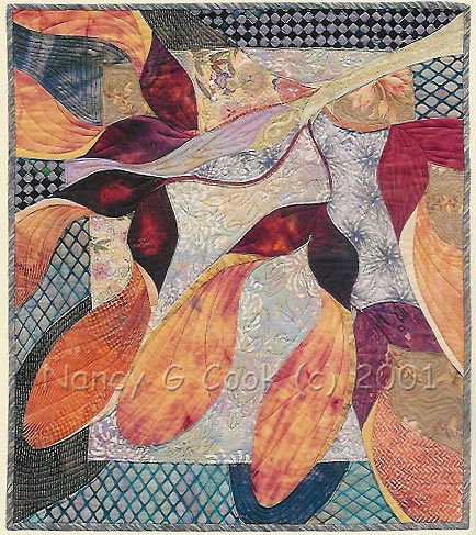 The blooms pass unseen; however the seeds are the first color in my spring garden. Airborne: Birds, Flight, and the Wrights, Aullwood Audubon Center, Englewood, OH Focus on Batiks, by Jan Smiley, pg 53 Pg 36 Click here for a detail image. |