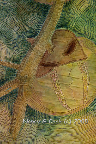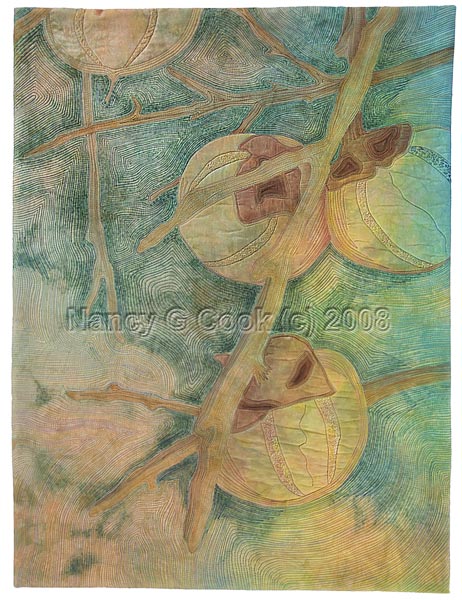 Winter Fruit - Embrace Health, Southminster, Charlotte, NC Seed Play, Lewis Ginter Botanical Gardens, Richmond, VA In the Details: Seeds Stitched, Waterworks Visual Arts Center, Salisbury, NC ARTQUILTS Transitions, Traveling Show, Durham Arts Council, Durham, NC and Page Walker Museum, Cary, NC Juror's Choice Award: Susan Brandeis Click here for a detail image. |