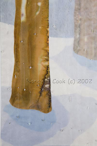 Winter veil of snow and light. Re-Visioning Fiber, Lakewood Cultural Center, Lakewood, CO SAQA Journal, Winter 2008, pg. 15 Spirituality through the Arts, UUCC, Charlotte, NC 2nd Place – Art Quilt Professional; Charlotte Quilters' Guild 2009 show Winter Whites juried exhibition, Ciel Gallery, Charlotte NC Click here for a detail image. |